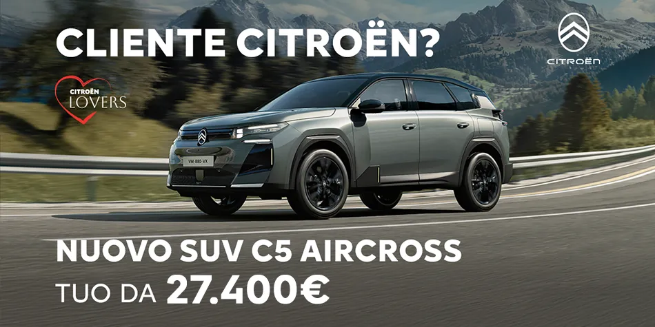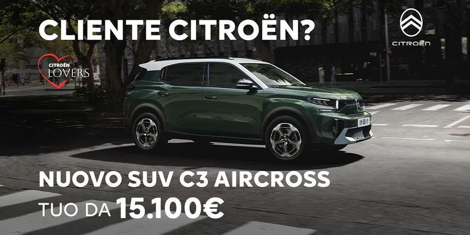 Se sei cliente Citroën, con Citroën Lovers puoi iniziare il nuovo anno con un nuovo prezzo: fino a 11.000€ di vantaggi su un’ampia gamma di modelli. Un’iniziativa pensata per premiare la tua fedeltà e rendere il cambio auto ancora più semplice e conveniente.